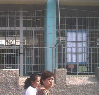 This picture shows two things. First is the school in the background. It has a barbed wire fence on top of the wall, then bars on the windows. The other is the contrast between the faces of the mother and daughter. Imagine what could have caused the mothers face to have such huge bags under her eyes and such an unhappy look. And imagine what the influence of looking as such a face for 20 or so years has on her daughter if we consider that emotions are contagious and a child's face mirrors that of the mother.